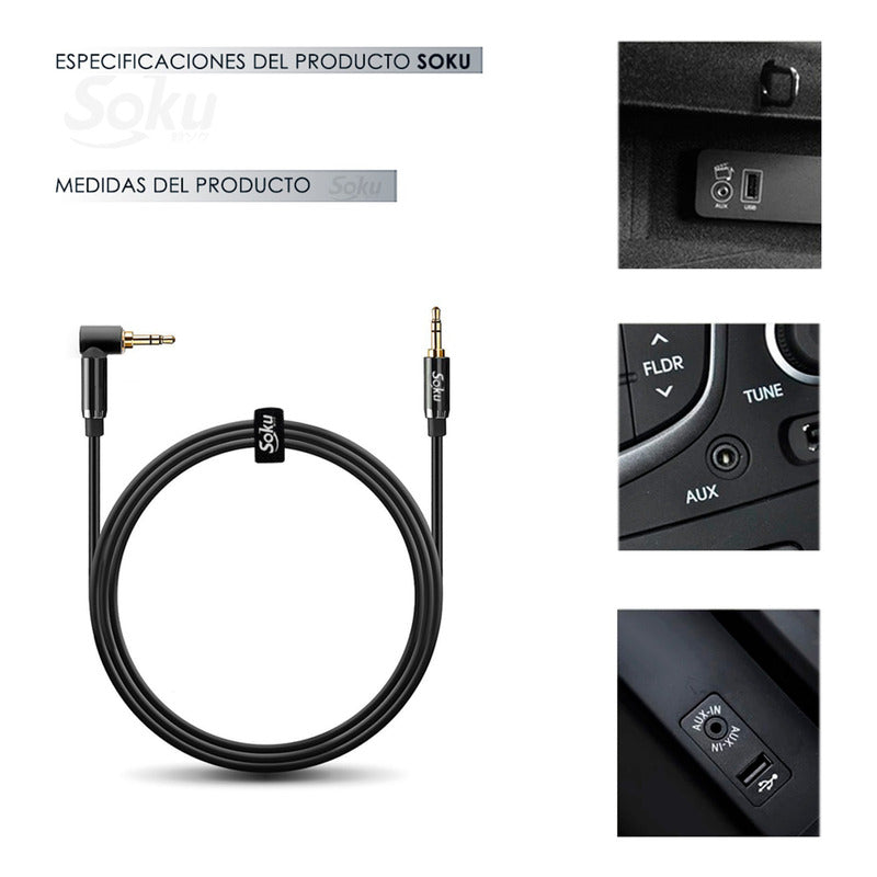 Cable Auxiliar 3.5mm Macho A Macho Auto Estéreo 3 Polos 24k