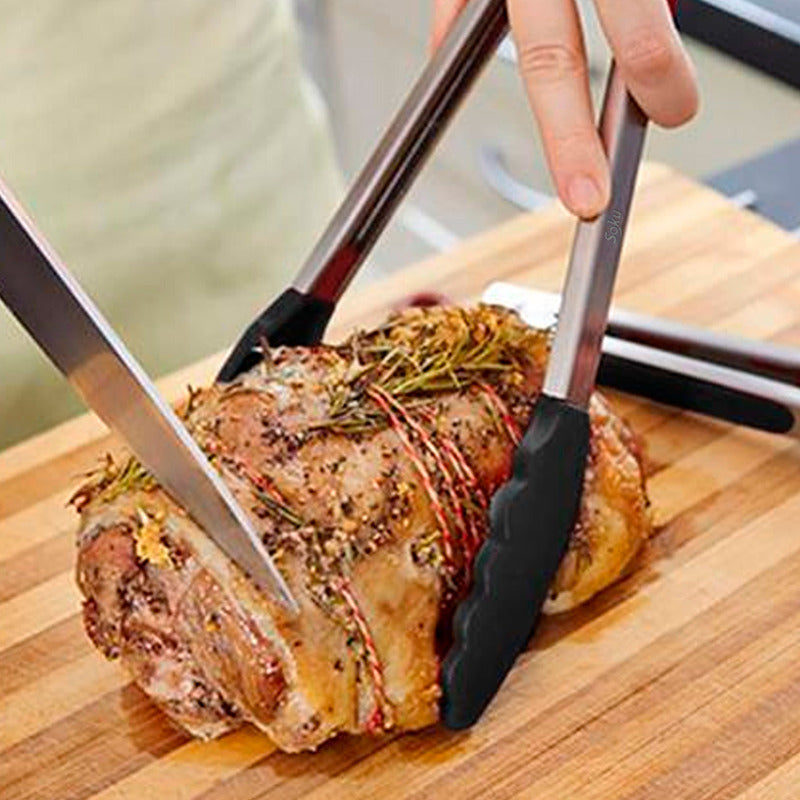 2 Tenazas Chef Acero Inoxidable Pinzas Silicona Pan Ensalada