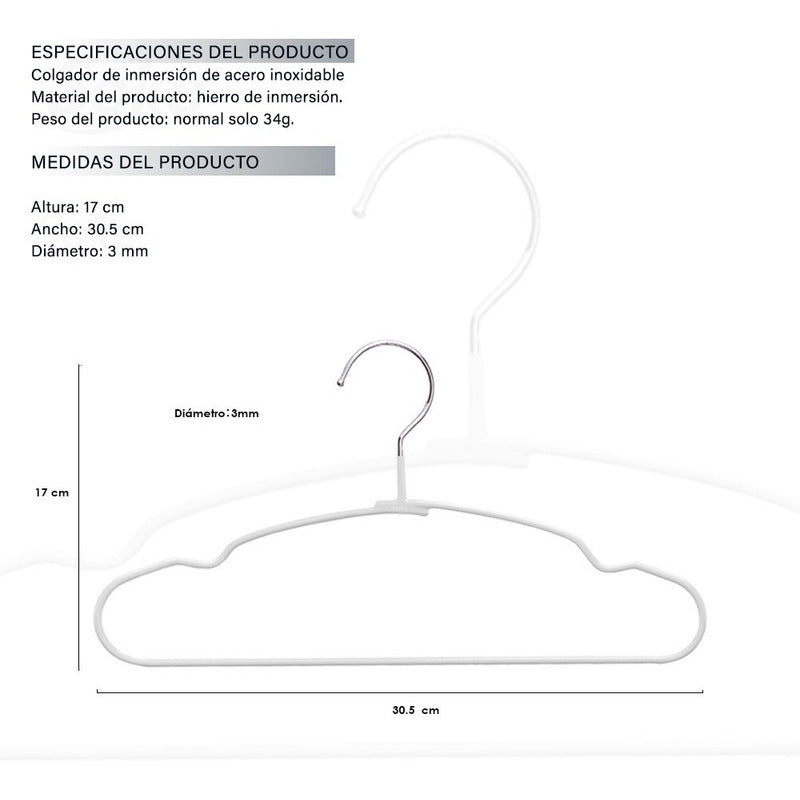 ¡Bienvenido a Sokustore! - Facturamos - Mantén organizado el armario de tus seres queridos con esta percha de hierro de inmersión cromado altamente resistente. - A PRUEBA DE VIENTO: sostiene la ropa en su lugar sin caerse. - MUESTRAS DE AGARRE: Los hombros contorneados mantienen las formas de la ropa mientras que las muescas adicionales ayudan a mantener los accesorios en su lugar. - FUERTE CAPACIDAD DE CARGA: resiste hasta 8 kg de ropa. CARACTERÍSTICAS GENERALES Marca: SOKU Modelo: Tipo:organizador/ hogar Material: hierro de inmersión y PP. PARÁMETROS / MEDIDAS: Tamaño: 30.5 x 17 cm Diámetro: 3 mm Peso: 34g CONTENIDO: 10 piezas