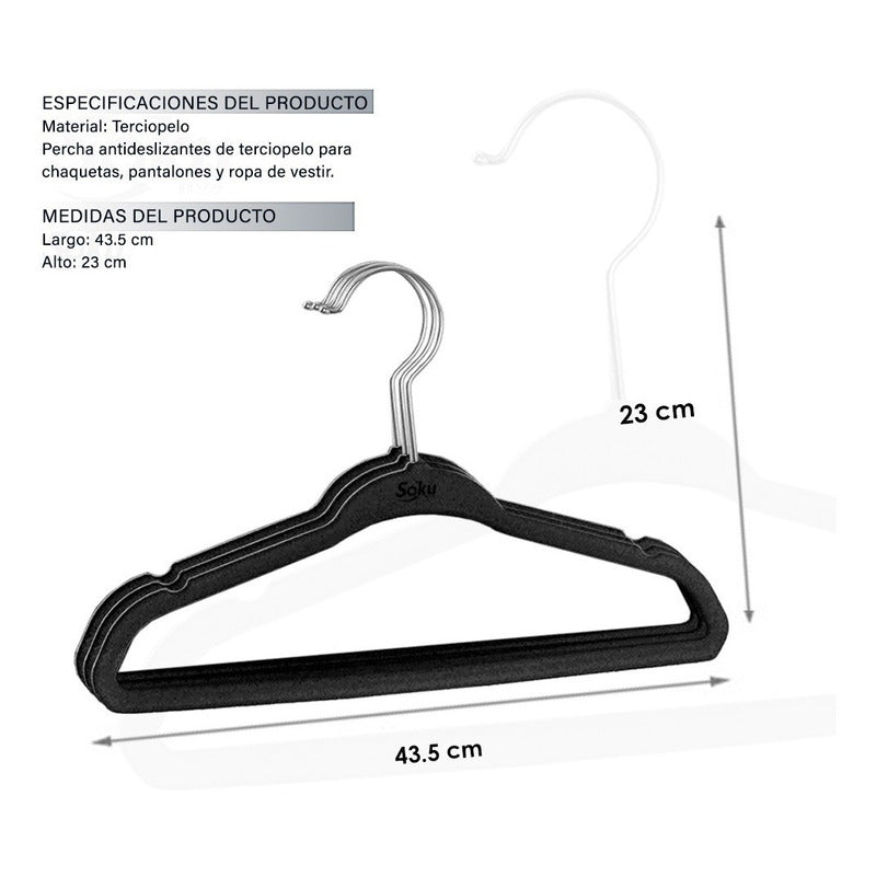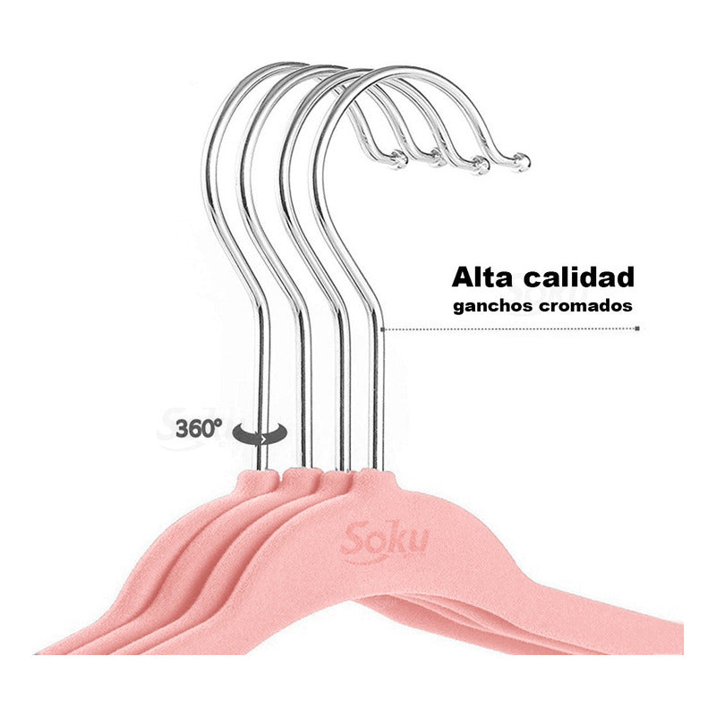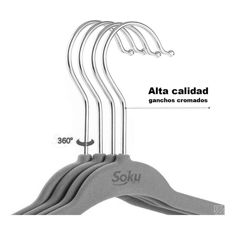 - Los ganchos para pantalones cuentan con una barra horizontal que está cubierta de terciopelo lujoso y que evita arrugas.