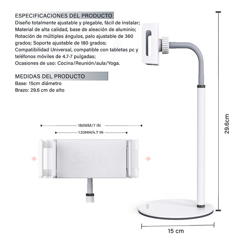 Soku Base Celular Mini Tableta Soporte Gira 360 4.7'' A 7''