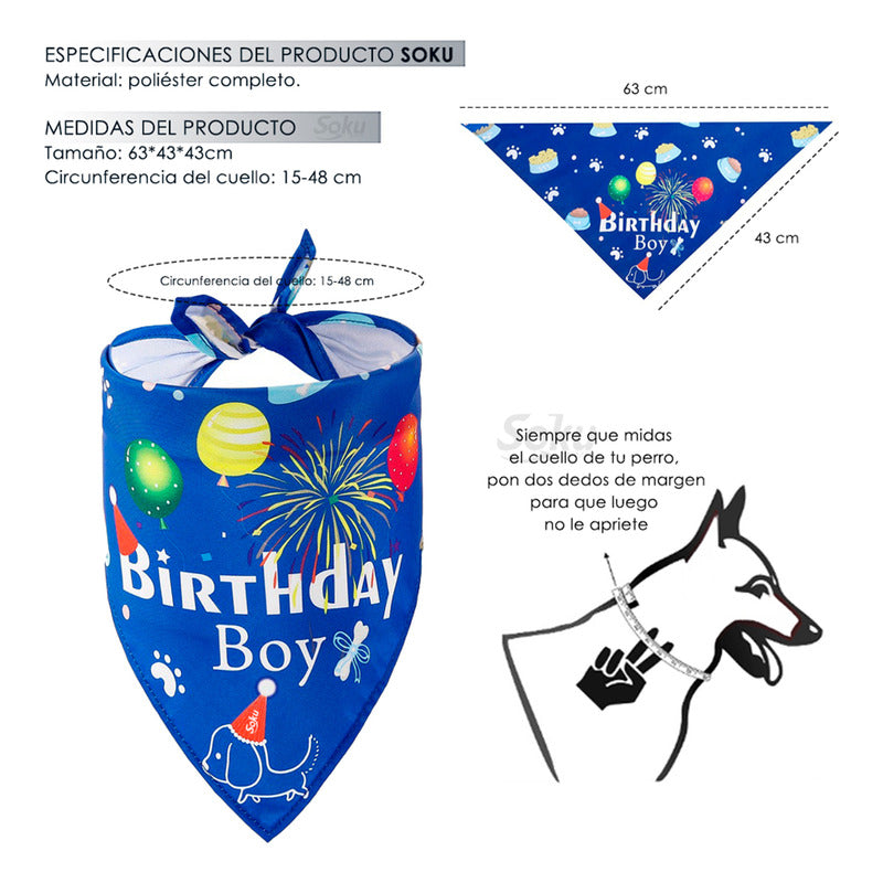 Soku Collar Perro Pañuelo Fiesta Cumpleaños Disfraz Mascota