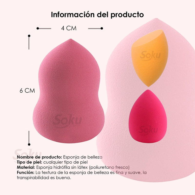 Set 4 Esponjas Maquillaje Humedo Seco Foam Recargas Soku