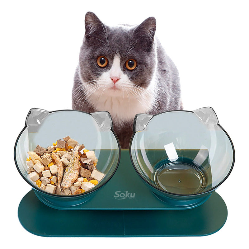 Tazon Doble Elevado Ergónomico Perros Gatos Calidad Soku