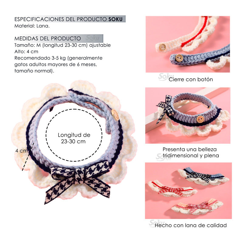 Soku Collar Bordado De Lana Moño Para Gato Super Kawaii