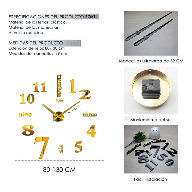 Soku Reloj De Pared 3d Sala Oficina Gigante Durable