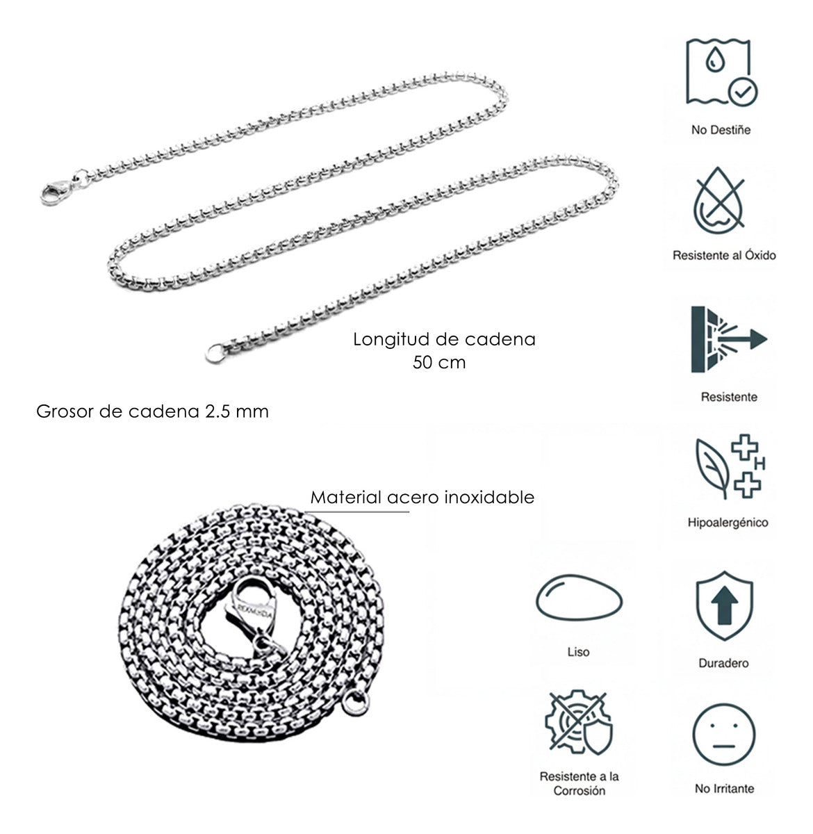 5x Cadenas Acero Inoxidable Bola Estilo Militar