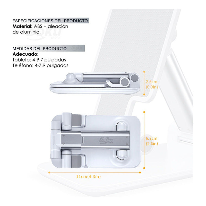 Almohadilla de silicona súper resistente y antideslizante: este elegante soporte para teléfono adopta aluminio duradero con una construcción sólida, puede sostener tu teléfono de forma estable. Las almohadillas de silicona superiores totalmente cubiertas y la base antideslizante de metal protegen bien tus dispositivos de arañazos y deslizamientos.