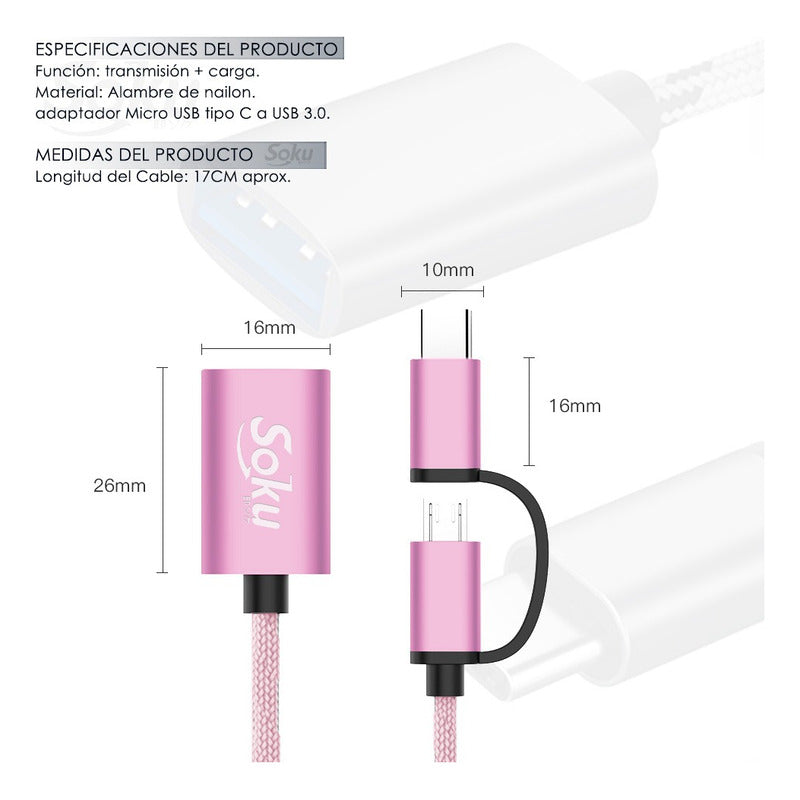 Cable 2 En 1 Adaptador Micro Usb V8 Tipo C A Usb 3.0 Otg