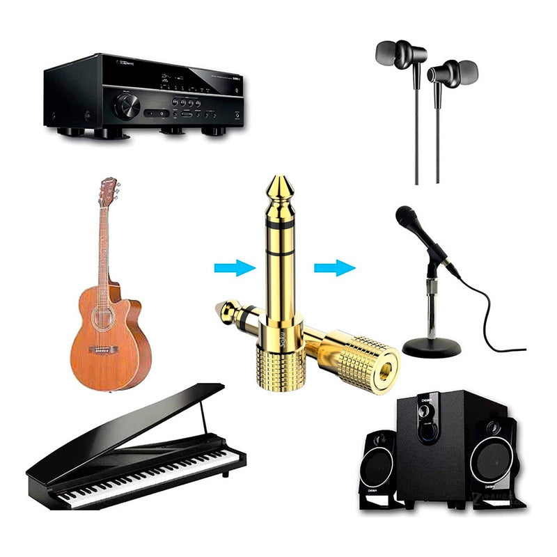 - COMPATIBILIDAD: compatible con auriculares, micrófono, altavoz, reproductor de MP3, etc. con un conector macho de 3.5 mm. Aplicable en cualquier dispositivo de audio con un conector estéreo TRS de 6.35 mm como guitarra, piano, amplificadores, receptores AV, mezcladores y otros instrumentos musicales.