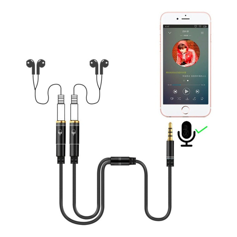 El Cable Divisor SOKU adapta audio de 1 Jack 3.5 mm estándar Macho 4 Polos (TRS) a 2-Jack Hembra 3.5 mm. Es compatible para la mayoría de los dispositivos con el puerto auxiliar de 3.5mm (AUX). Acepta doble auricular. Es una gran solución para compartir música, películas, videos y juegos con sus familias y amigos. Ahora Acepta Microfono.