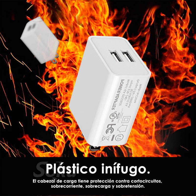 Cubo Cargador De Pared 2 Puertos Usb 5v 2a Certificado