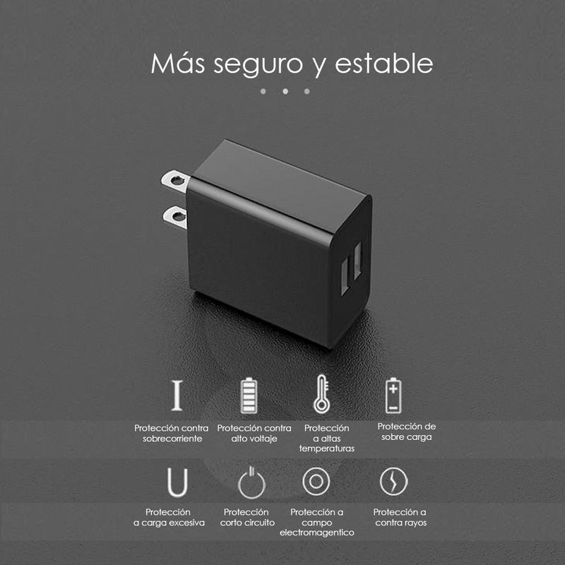 Nuestro Cargador de Pared Cuenta con certificación de Seguridad UL y FCC altamente reconocidas internacionalmente. El circuito de IC sofisticado garantiza una protección completa para usted y sus dispositivos, incluyendo las protecciones de sobrecalentamiento, sobrecorriente y cortocircuito. El material Contra-Incendios (Anti-fire) ABS + PC lo hace duradero para que puedas usarlo por un largo tiempo. Además, sus pines están niquelados para evitar chispas durante la conexión y desconexión a la toma eléctrica.