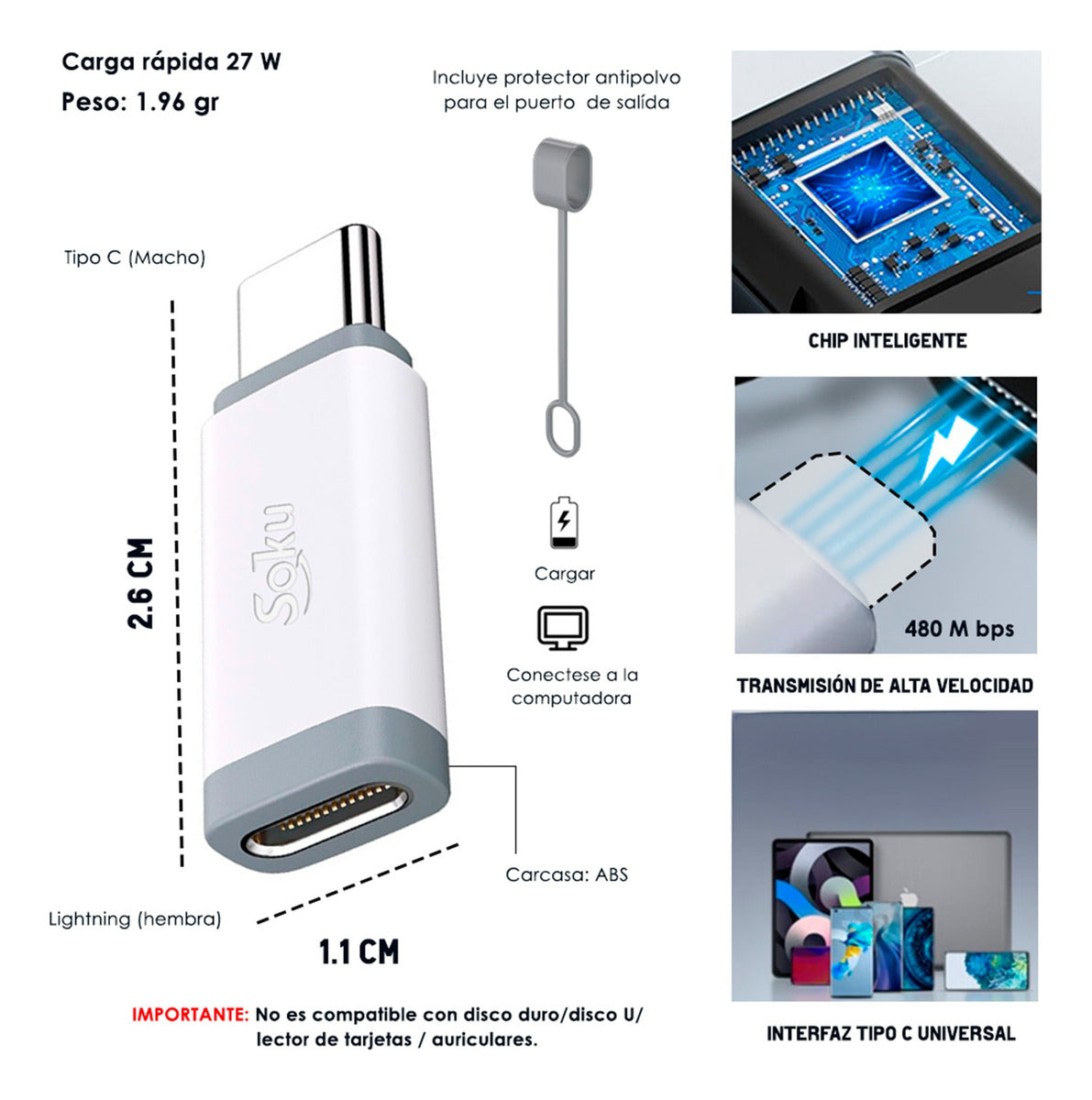 Adaptador Lightning A Tipo C Para iPhone 16 Android 27w