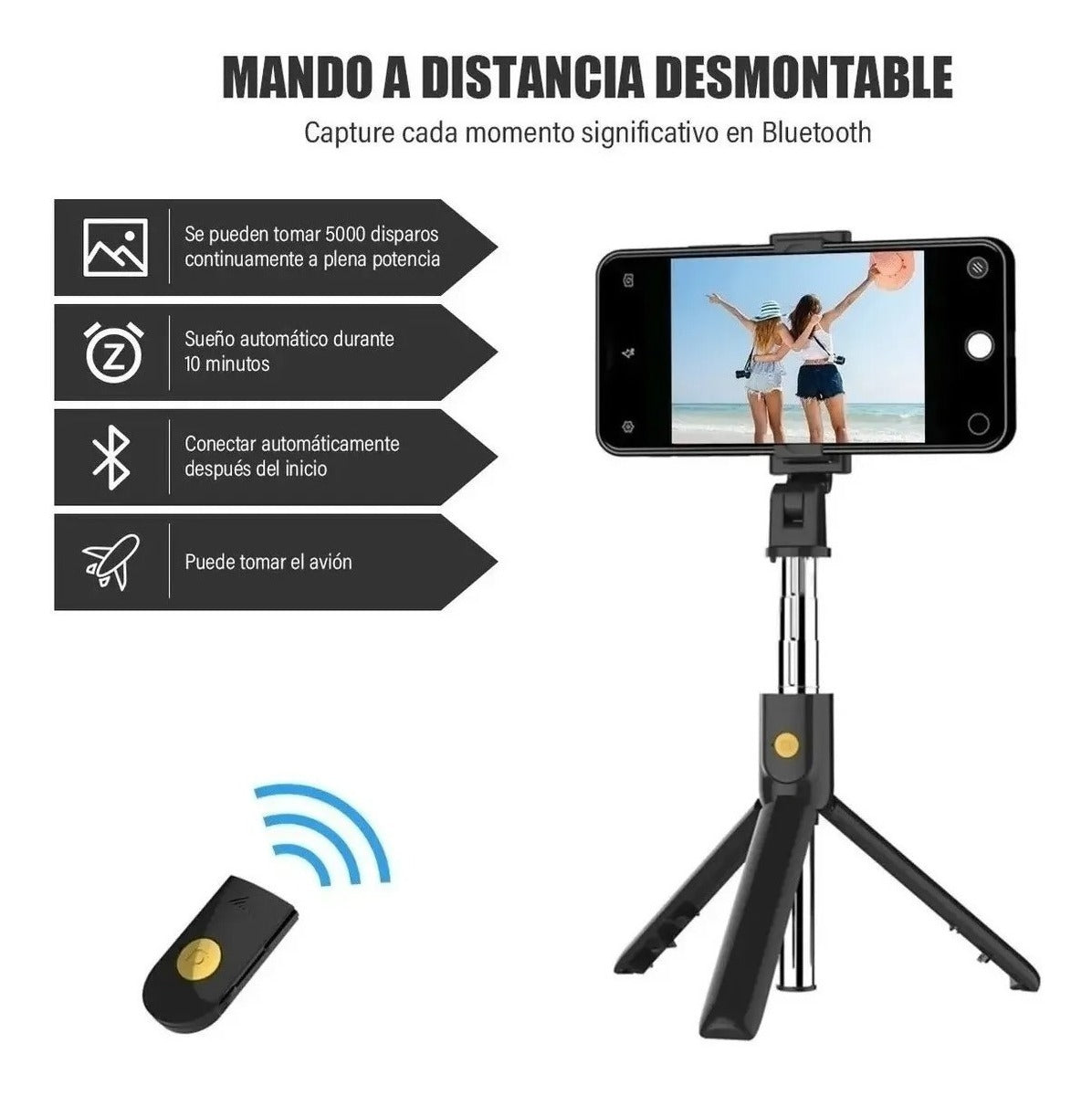 Palo Selfie Tripie Control Remoto Bluetooth Trípode Celular