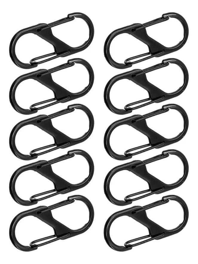 Hebilla de senderismo con doble hebilla en forma de S, doble colgante irregular, hebilla de senderismo en forma de 8, acampada, mochila multifuncional, gancho rápido, 10 piezas