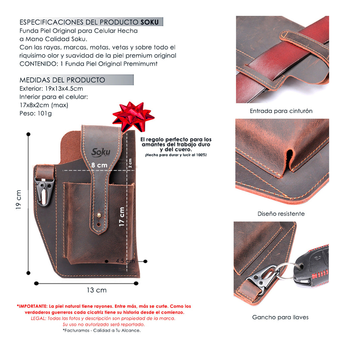 Soku Funda Piel Natural Original Para iPhone Celular Cinto